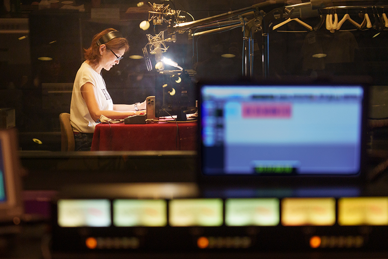 ブースに入り、メモ用のペンを片手に身振り手振りを交えて、益子さんは朗読を始めます。「特別、練習はしてこなかった」そうですが、ディレクターからは「とてもスムーズで間違いは少ないですよ」とお褒めの言葉をいただきます。