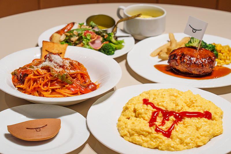 メニューはコース仕立てで、前菜のサラダとスープ、メインは洋食の王道・オムライス、ナポリタン、ハンバーグの3種から選べます。デザートは老舗とらやの「てへぺろ焼き」。「料理店なのだから、おいしい料理を提供する」というこだわりは、前回から変わらず貫かれています。
